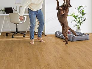 A floor for true individualists, because it leaves no design wishes to be desired. CORKLIFE FREESTYLE ACCESS - due to a new technology visuals are directly printed on the cork veneer. The surface does not have to be either flat or smooth. Three-dimensionality of the respective natural material can perfectly be reproduced on cork. The result is a floor covering on which colours, nuances, grains and relief-like structures of natural materials such as wood are reproduced in a previously unknown level of detail - according to your personal wishes and taste.