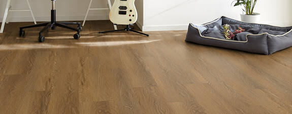 DECOLIFE AQUA BASE is water-resistant and suitable for wet rooms like bathroom or kitchen. Due to its low construction hight of only 5,2 mm DECOLIFE AQUA BASE is perfect for renovation projects and can directly be installed on hard floorings. The cork underlay makes the flooring particularly comfortable, absorbs impact and step sound and provides additional thermal insulation.