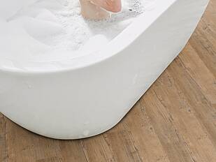 WATERCORK PLUS is a waterproof design flooring for floating glueless installation. Due to the newly developed lock system "PressFit", WATERCORK PLUS can be installed quickly and easily in all rooms, even in wet areas such as bathrooms and kitchens. With a height of only 6 mm, WATERCORK PLUS can also be installed on existing hard flooring. The innovative development of the waterproof cork middle layer made of a cork granulate mixture is extraordinarly strong and provides all the advantages of a cork flooring. At the same time, the recovery properties of the cork are not affected and due to the comfort of cork it is a unique design flooring with excellent features.